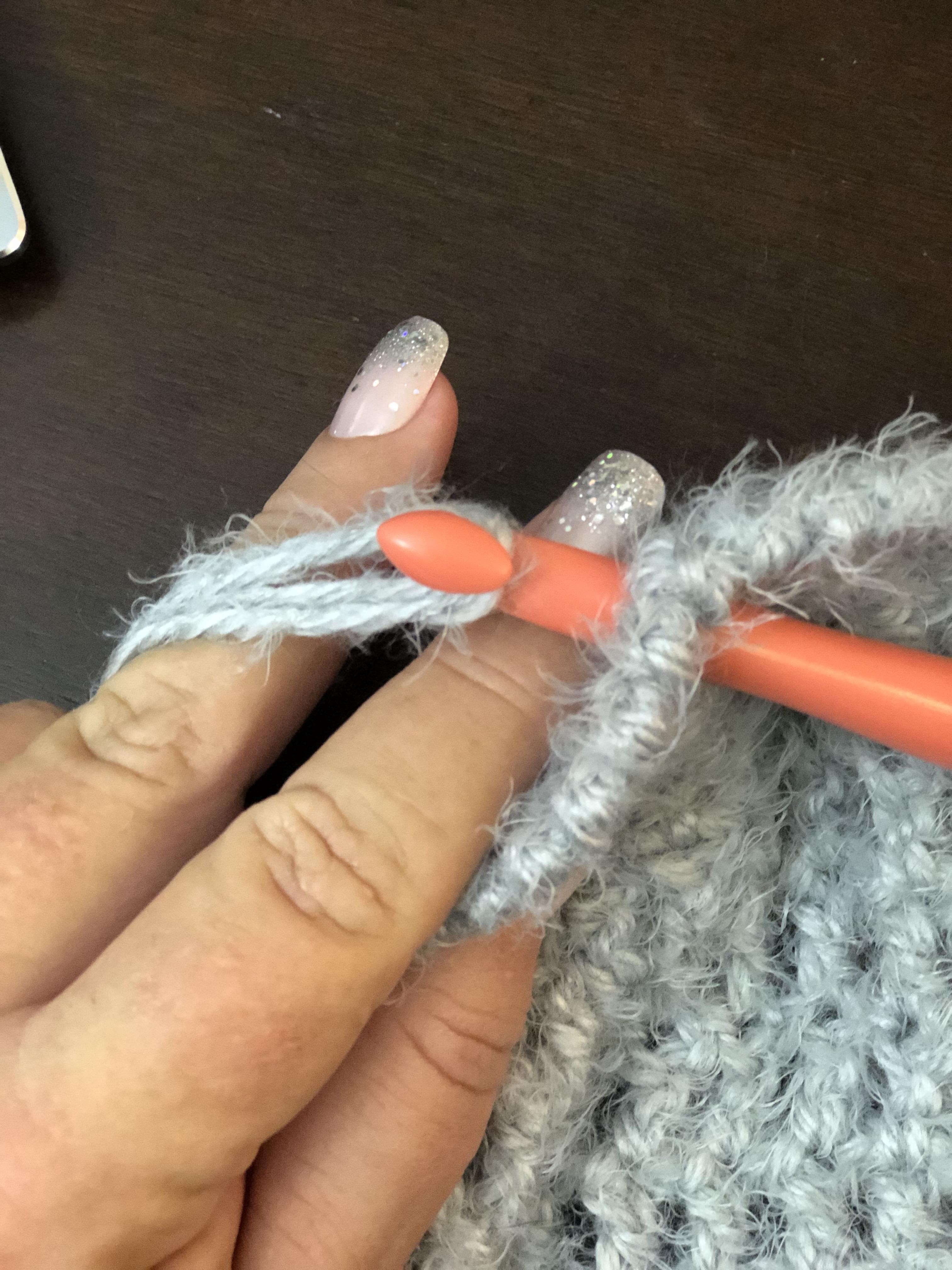 You will SC evenly around scarf.. when you have finished the SC around.. again do not end off.. Now you will do the Crab stitch around the scarf. When you have completed the Crab stitch Fasten off.