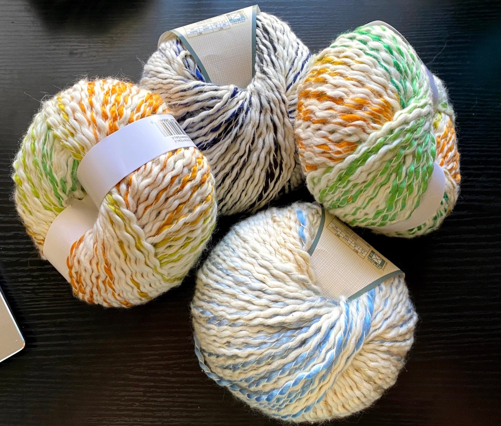Cotton Blend No5 is a bulky, on the soft side, fun colored yarn for your fall/winter designs. Great for hats, gloves, scarves, maybe even a small lap blanket but since it only comes in 109yd skein, anything bigger is gonna start costing a bit much.
