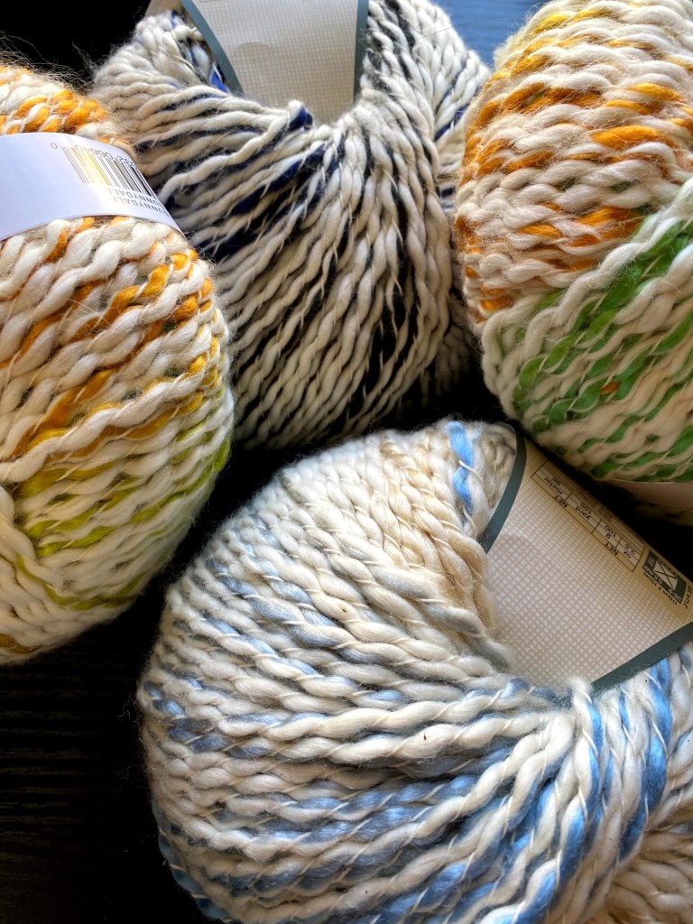 This yarn is “made” up using 2 strands that are fluffy & loose. One is a natural white, the other being a color changing strand and both are held together with a small singular thread, giving it a twisted type texture look. It comes in 6 different color combos. Regardless of the similarity with Arabella, this yarn is still easy to work with and comes in some fun, bright colors. I cant say with all honesty one is better than the other.. the choice will be up to you. I have broken down the differences below..